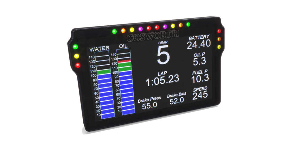 As with all of the Cosworth CDU range, multiple displays can be daisy chained from a single Cosworth device making this range ideal for installations such as rally (driver and co-driver) and marine. All of this is packed into a aluminium IP66 rated enclosure which, is ultra slim measuring only 24mm thick.