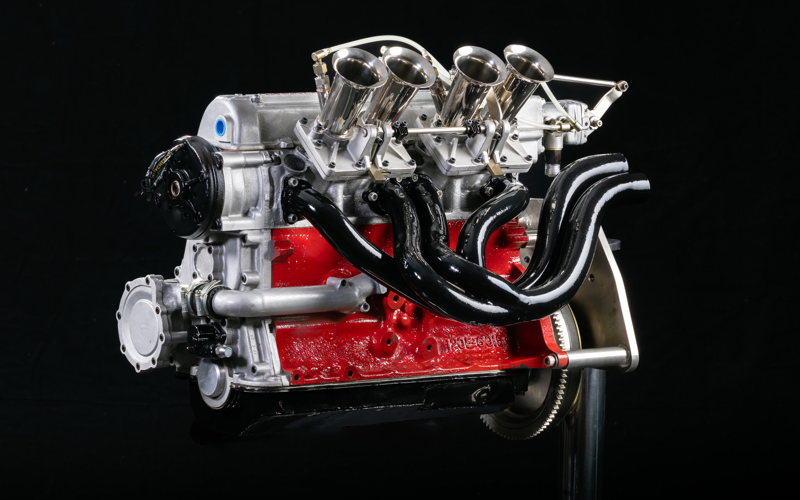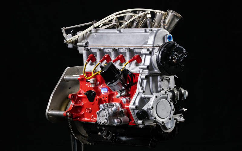 Cosworth will also display an SCA power unit, the first engine to feature a Cosworth-designed alloy cylinder head, based on a Ford Cortina 116E block. Introduced in 1964, the four-cylinder engine dominated Formula 2 racing for the next two years. A Cosworth FVA (Four Valve Type A) engine will also be shown. The revolutionary 1.6-litre, 4-cylinder, 16-valve unit introduced in 1966 also achieved exceptional success in Formula 2, dominating the sport until the early 1970s, and served as a vital test bed for the DFV.